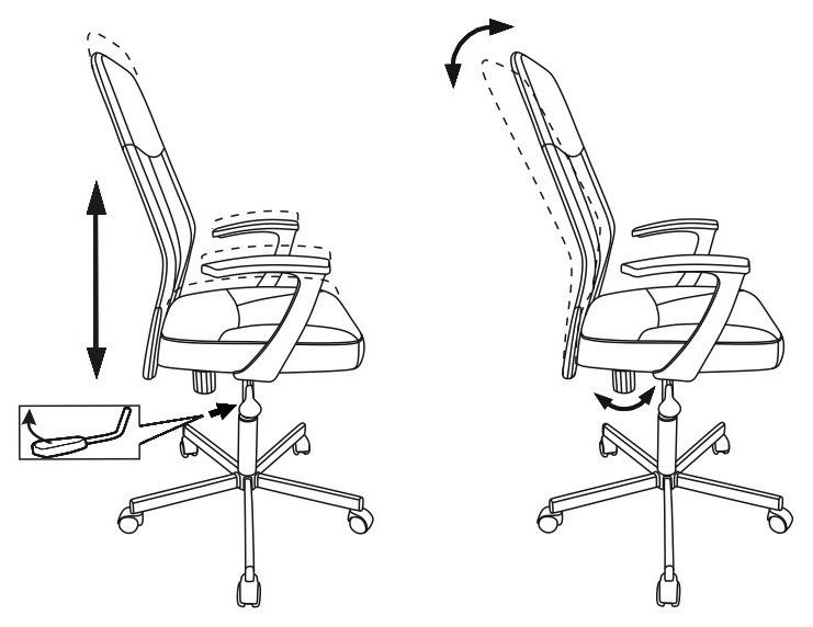 Колеса оснащены тормозом безопасности: стул не откатывается, когда вы садитесь или встаете.
