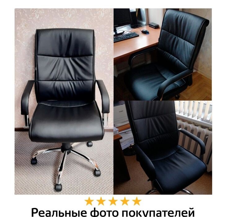 Кресло для руководителя выделяют стильный современный дизайн, хромированные подлокотники и пятилучие. Отличный выбор для молодых и энергичных руководителей.
