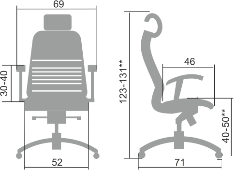 **Высота сиденья в верхнем и нижнем положении может быть изменена, в зависимости от модели применяемого газ-лифта.
