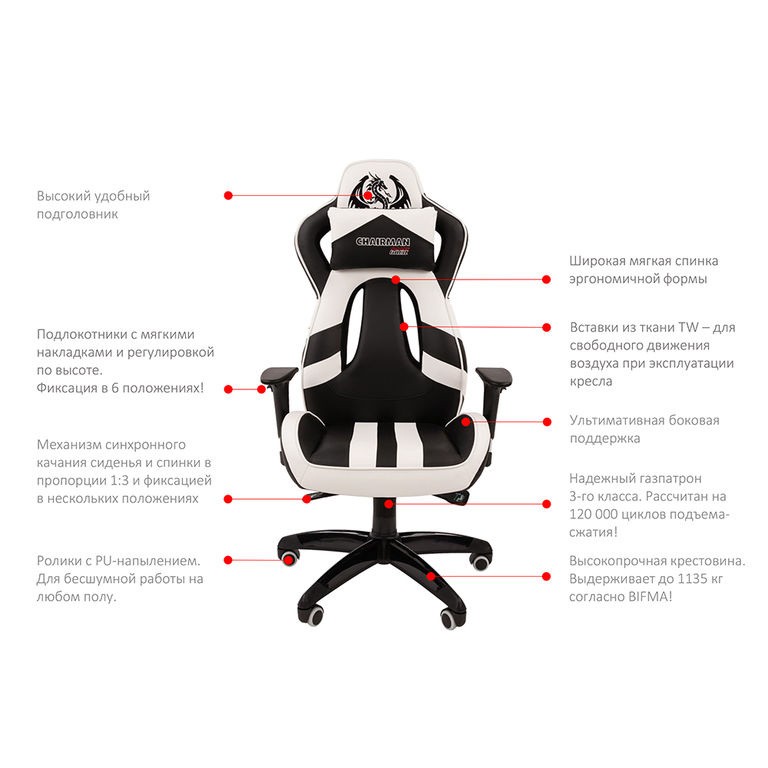 Кресло игровое CHAIRMAN GAME 25 (черный/белый)