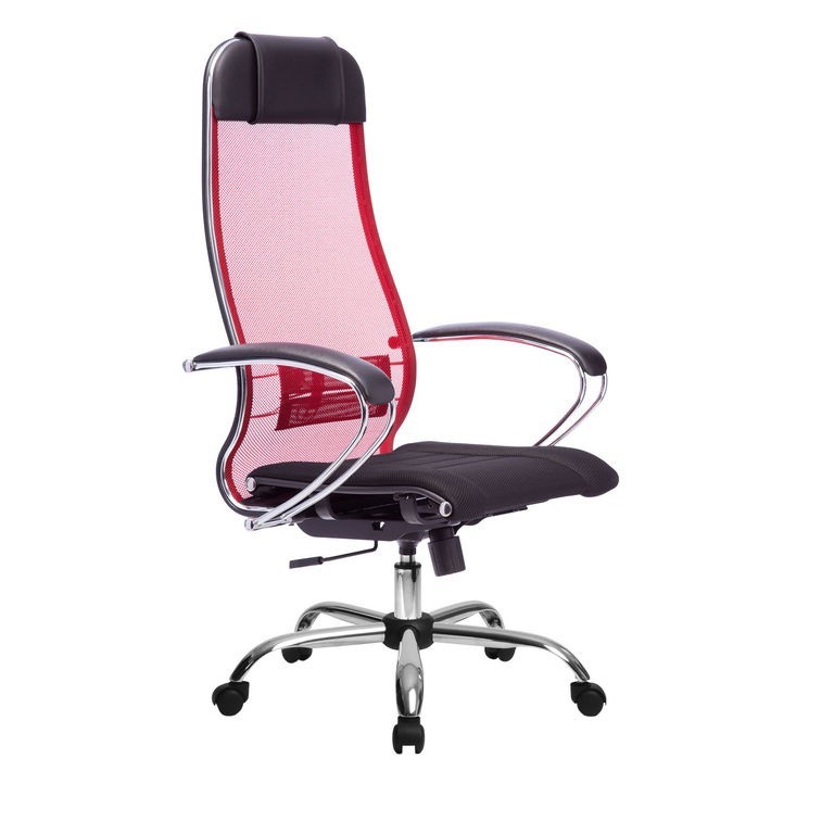 Кресло офисное Метта Комплект 3 (красная сетка), хром пятилучие