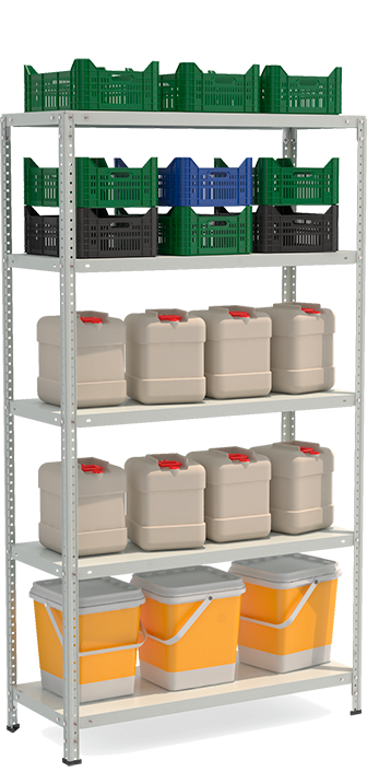 • Стойки и полки окрашены полимерной (порошковой) краской RAL 7035 светло-серого цвета.