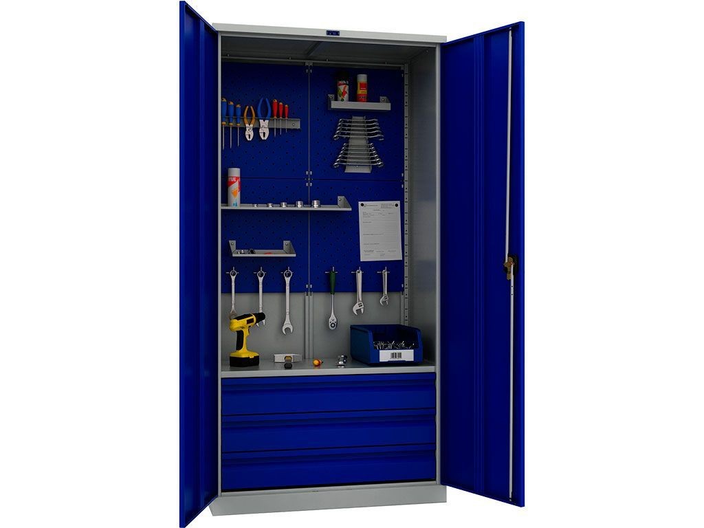 Предназначен для хранения инструментов, слесарных приспособлений и других изделий на предприятиях, мастерских, автосервисах.