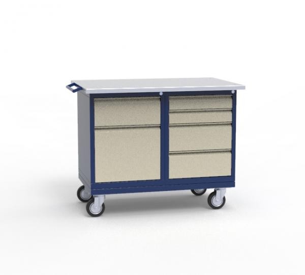 – верстак перемещается на большегрузных поворотных колёсах Ø 125мм, нагрузка на колесо 160кг.