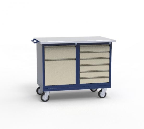 – верстак перемещается на большегрузных поворотных колёсах Ø 125мм, нагрузка на колесо 160кг.