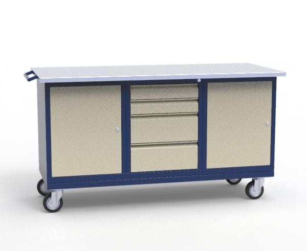 – верстак перемещается на большегрузных поворотных колёсах, Ø 125мм, нагрузка на колесо 160кг.
