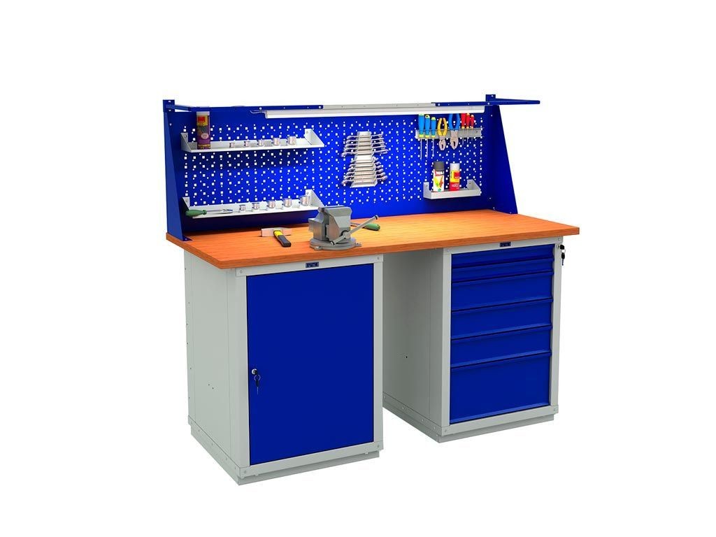 - дополнительно верстак можно укомплектовать перфорированным экраном соответствующего размера, светодиодным освещением и аксессуарами для инструментов.