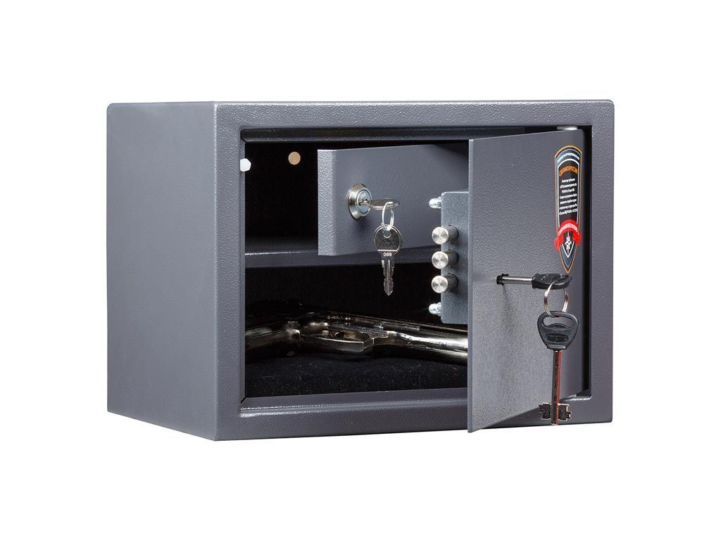 Предназначен для хранения короткоствольного и травматического оружия, пистолетов, холодного оружия (охотничьи ножи) в домашних условиях. Сейфы соответствуют требованиям ст.59 Постановления правительства РФ №814 от 21 июля 1998 года «О мерах по регулированию гражданского и служебного оружия и патронов к нему на территории РФ».