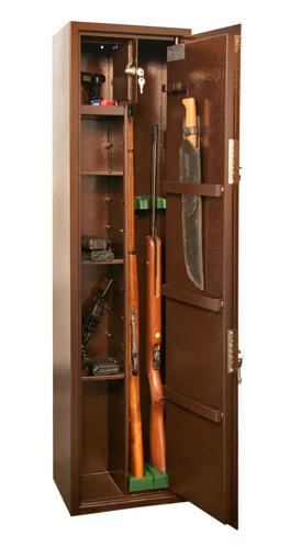 Оружейные сейфы на 2 ружья. Отделение под патроны, запираемое на замок.